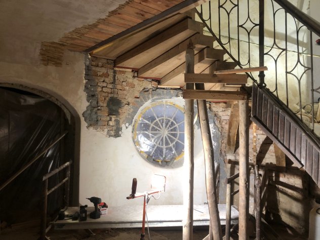 Projekt řeší havarijní stav hlavního točitého schodiště na zámku v Litenčicích, které je jediným přístupem do prvního a druhého patra zámku. Schodiště je rozsáhle poškozeno dřevomorkou. Realizovány budou stavební práce spojené s opravou schodiště.